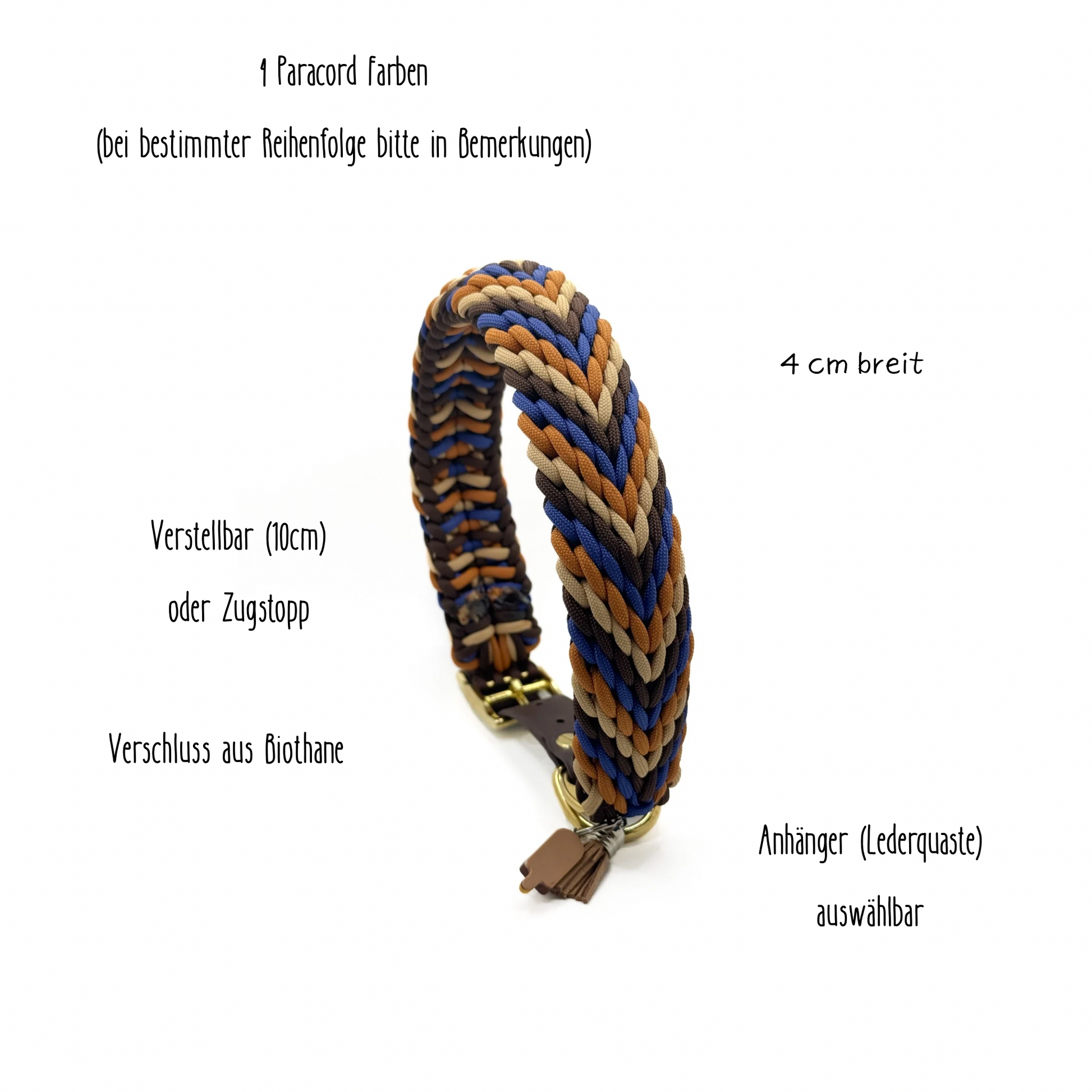 Entdecken Sie das robuste und modische Paracord Halsband aus der HAWK Kollektion mit Beschlägen in gold, silber und rosegold. Perfekt für den täglichen Gebrauch und ein stilvolles Accessoire für Ihren Hund. Hergestellt aus widerstandsfähigem Paracord und Biothane für Langlebigkeit und Komfort.