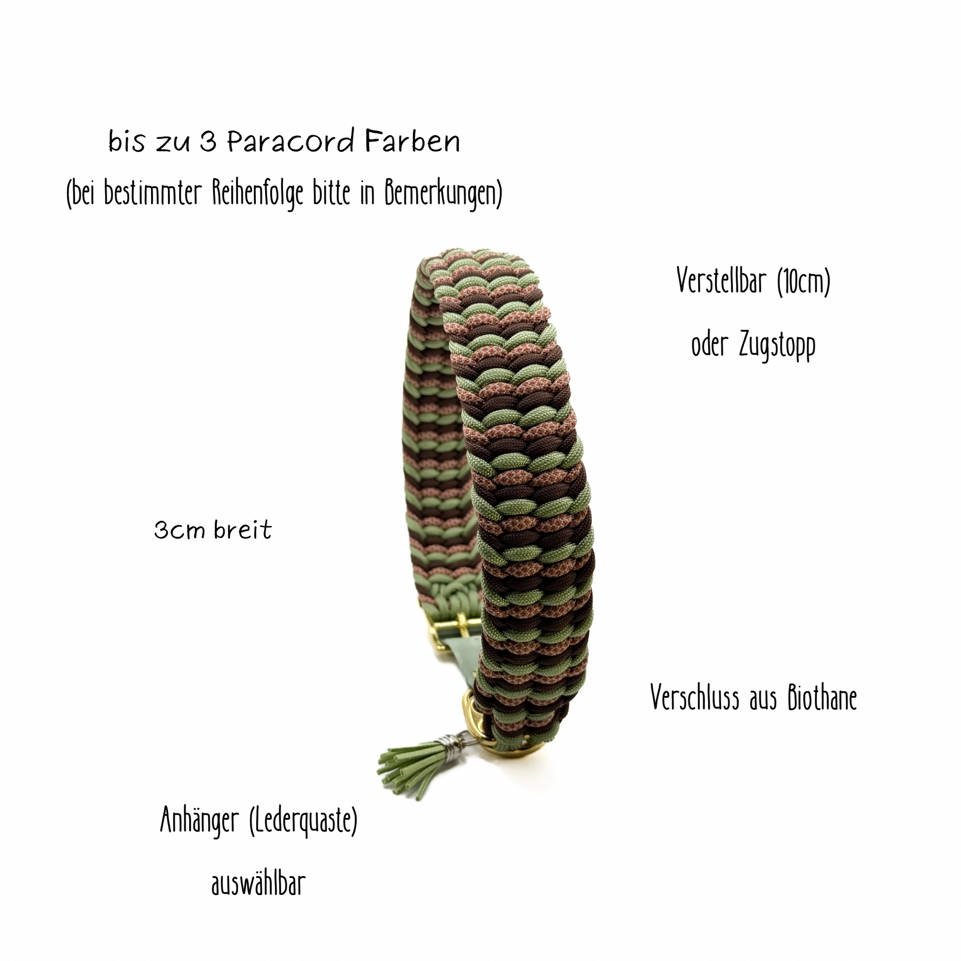 Wenn du einen verstellbaren Biothane Adapter mit auswählst, wird dieser in der ausgewählten Größe verstellbar sein.