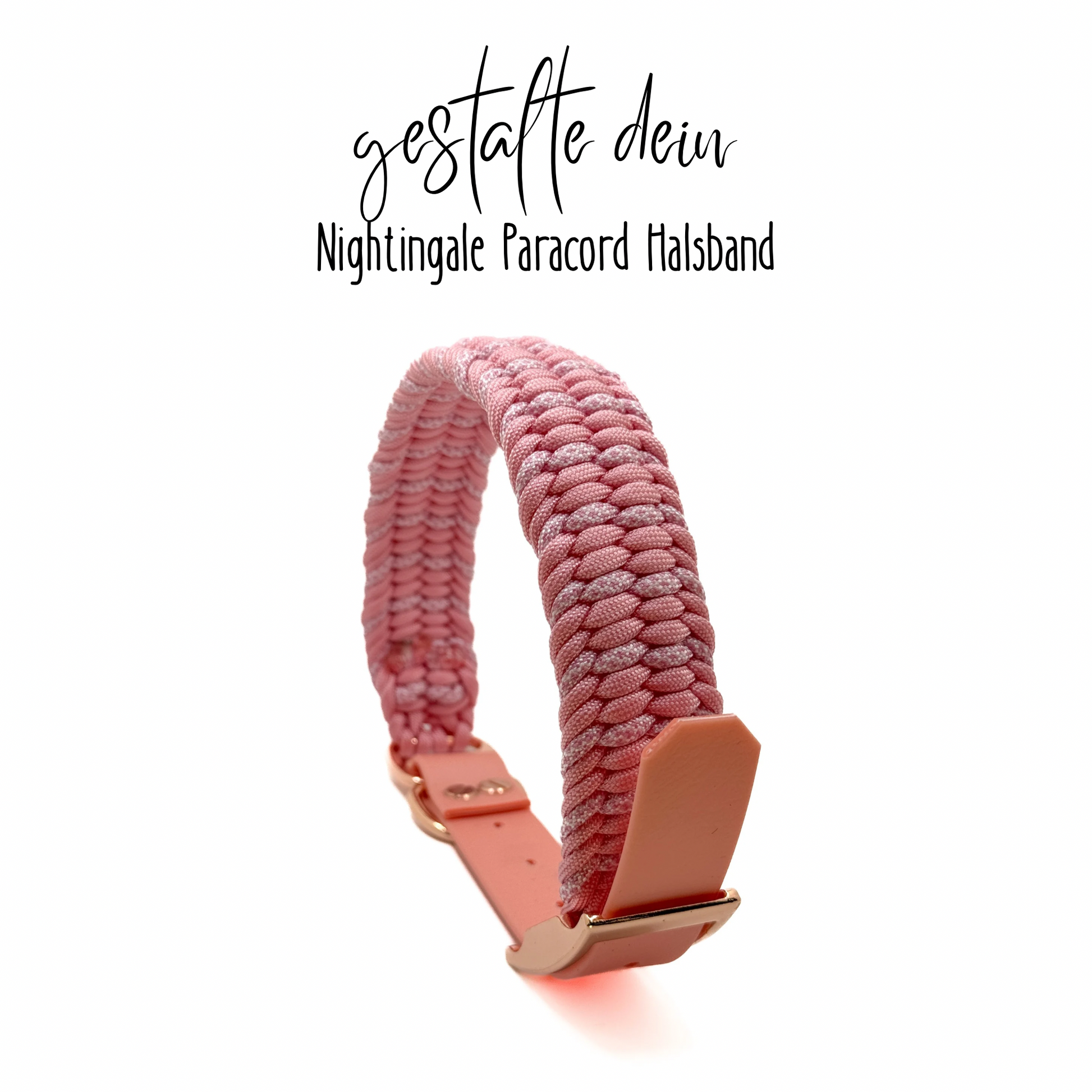 Entdecken Sie das robuste und modische Paracord Halsband aus der NIGHTINGALE Kollektion mit Beschlägen in gold, silber und rosegold. Perfekt für den täglichen Gebrauch und ein stilvolles Accessoire für Ihren Hund. Hergestellt aus widerstandsfähigem Paracord und Biothane für Langlebigkeit und Komfort.