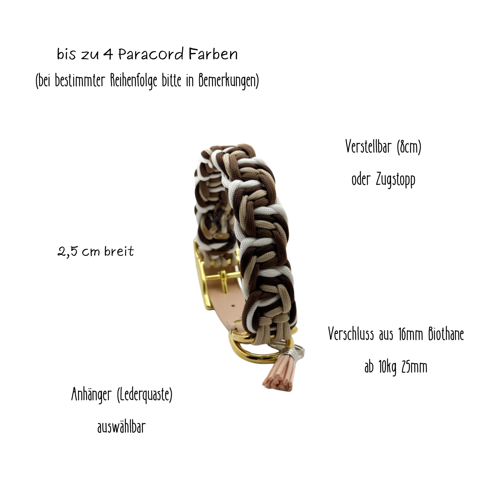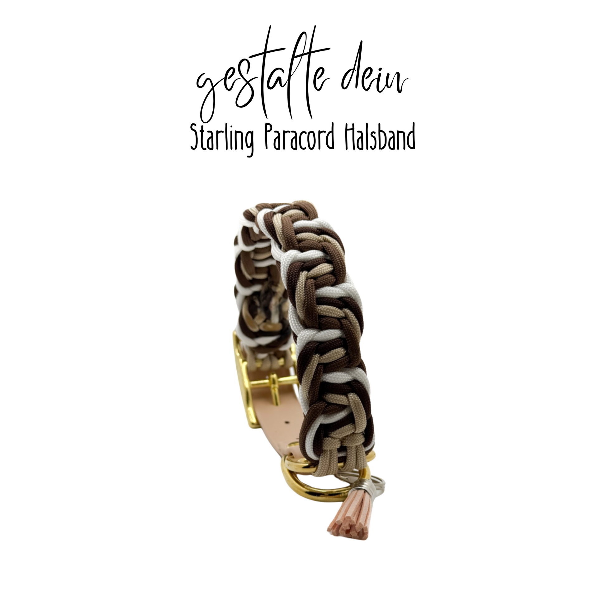 Entdecken Sie das robuste und modische Paracord Halsband aus der STARLING Kollektion mit Beschlägen in gold, silber und rosegold. Perfekt für den täglichen Gebrauch und ein stilvolles Accessoire für Ihren Hund. Hergestellt aus widerstandsfähigem Paracord für Langlebigkeit und Komfort.